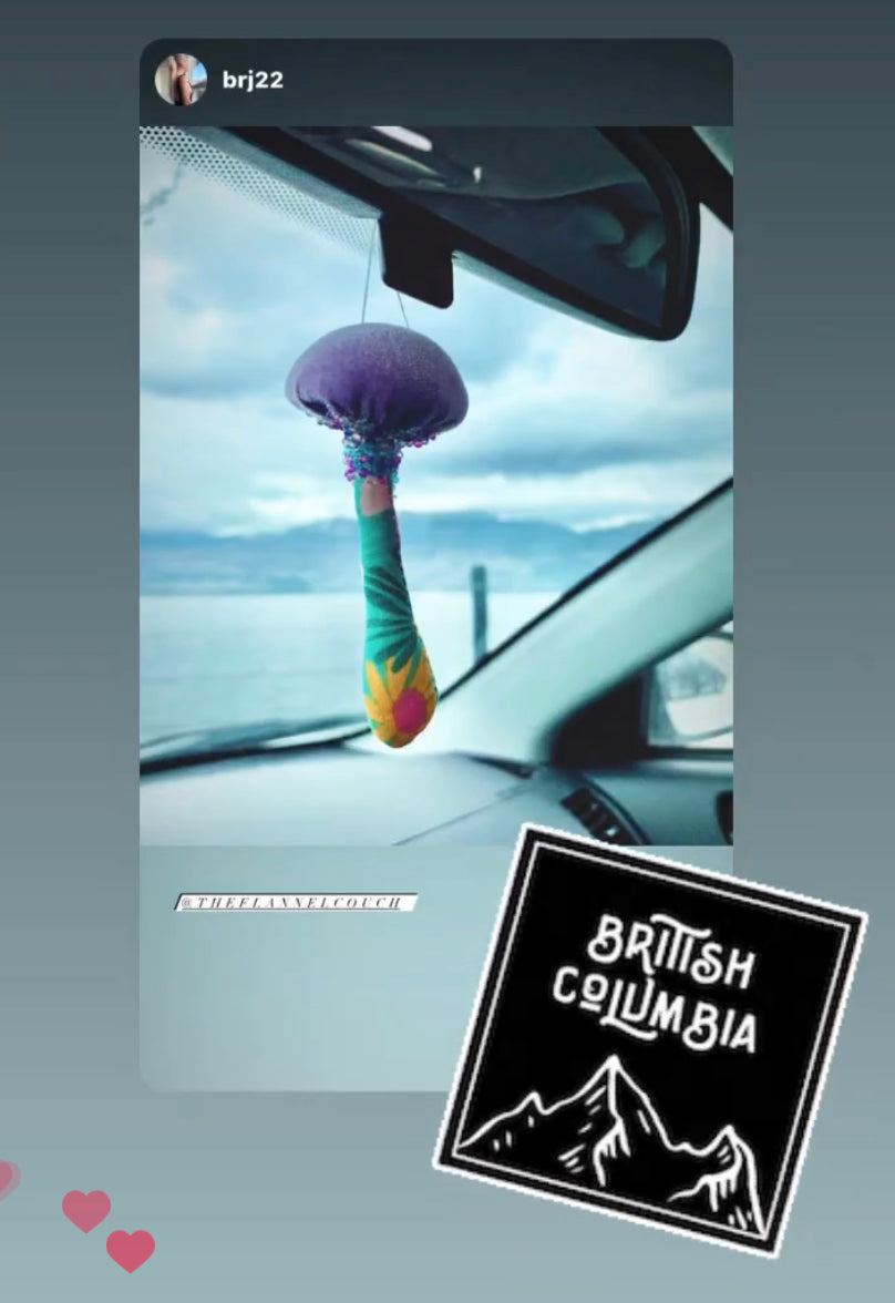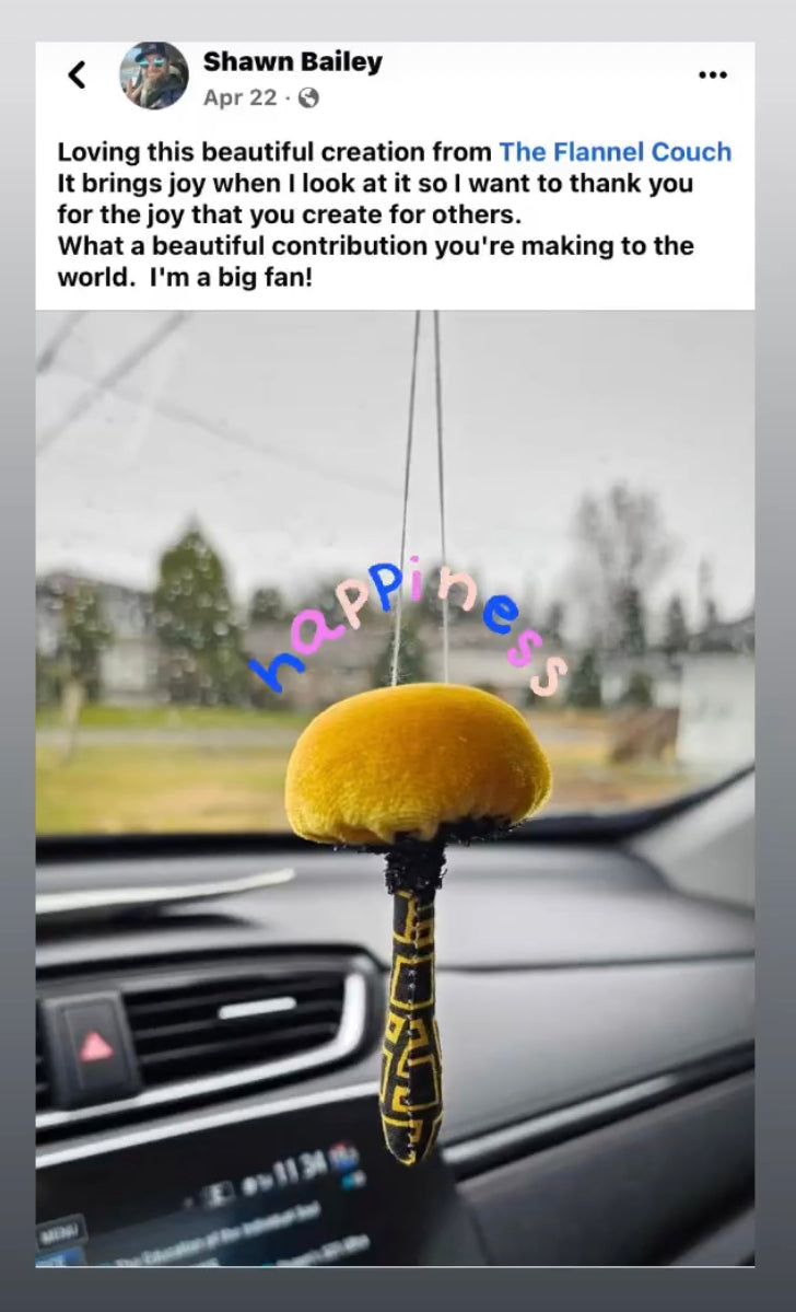 "Thank you to The Flannel Couch for the wonderful mushroom display for my car. I just love it".
