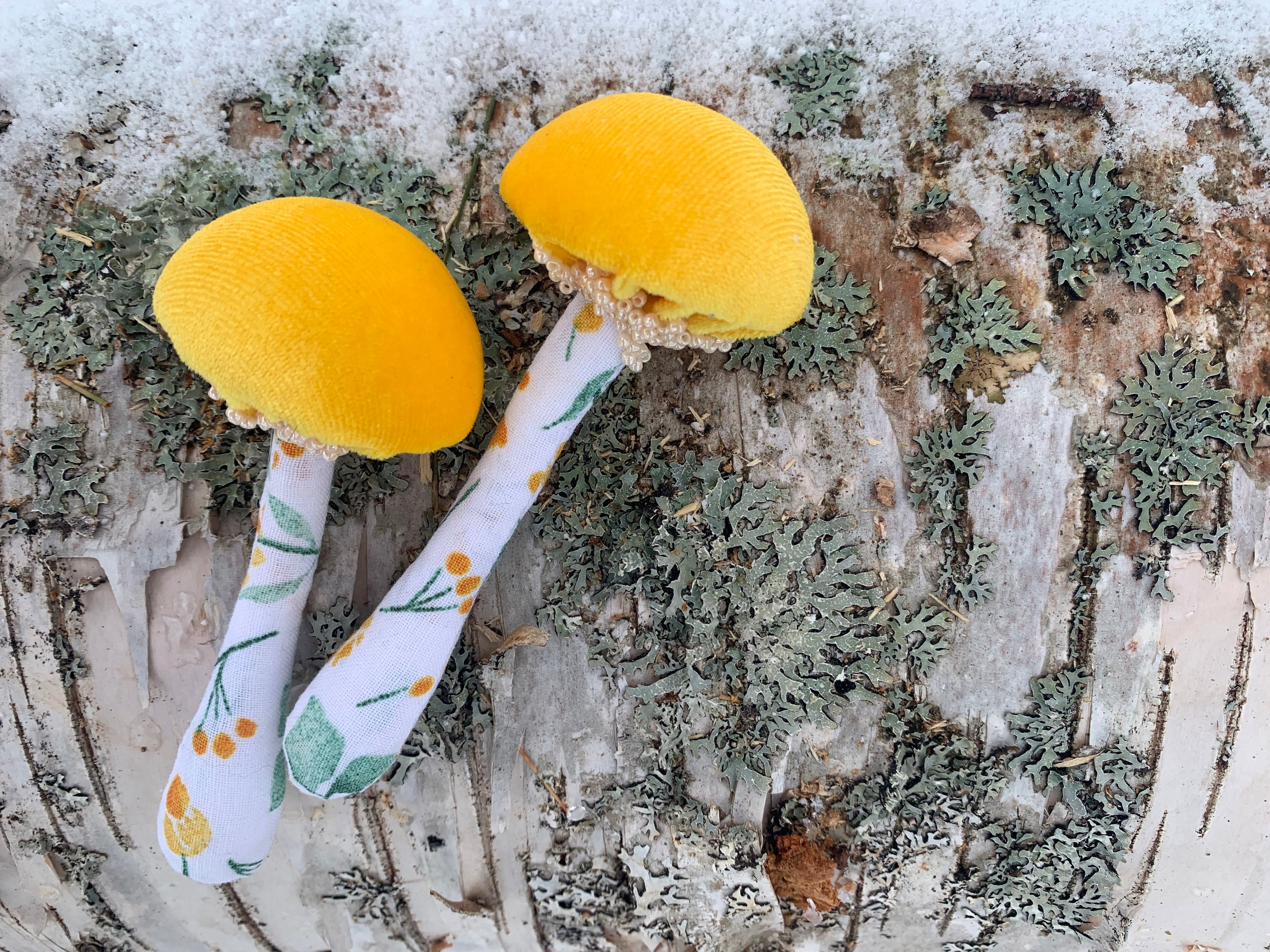 Twin textile mushrooms handmade alike to split with your bestie; Gift one/Keep...